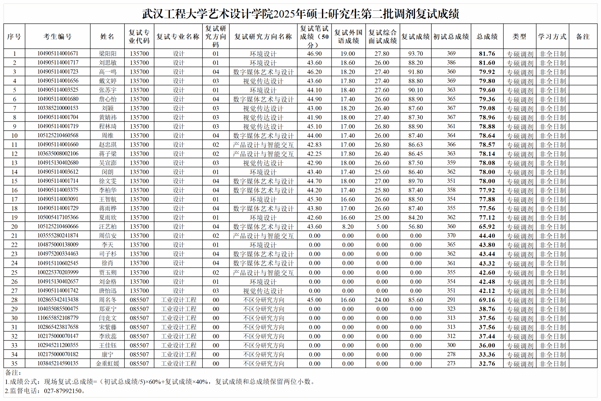 2025年硕士研究生第二批调剂复试成绩