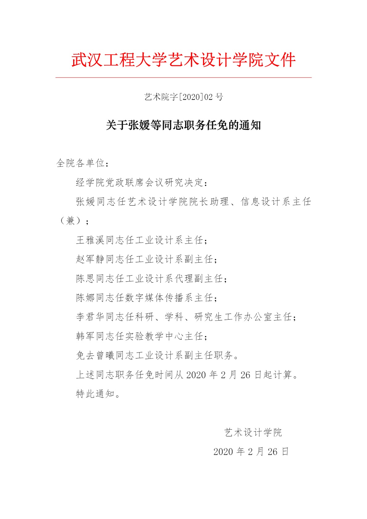 关于张媛等同志职务任免的通知