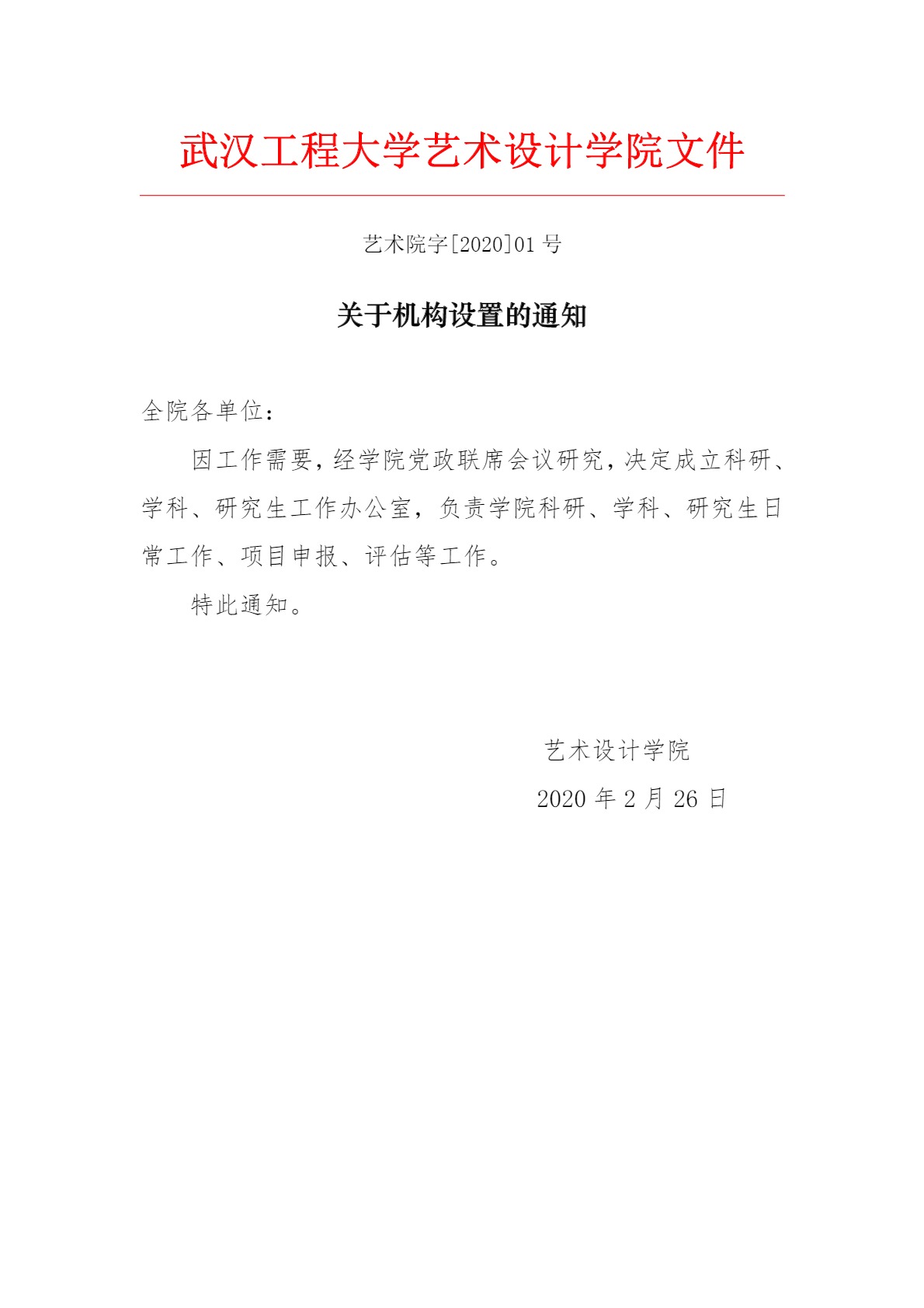 关于机构设置的通知