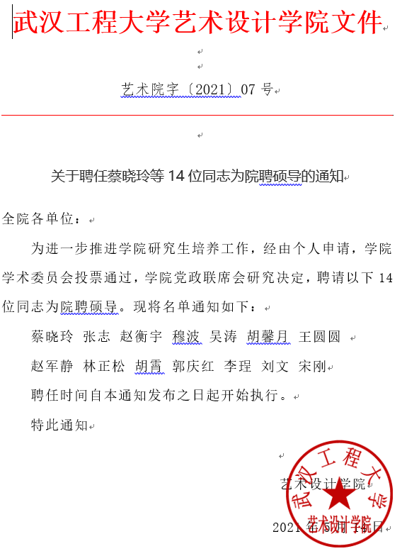 关于聘任蔡晓玲等14位同志为院聘硕导的通知