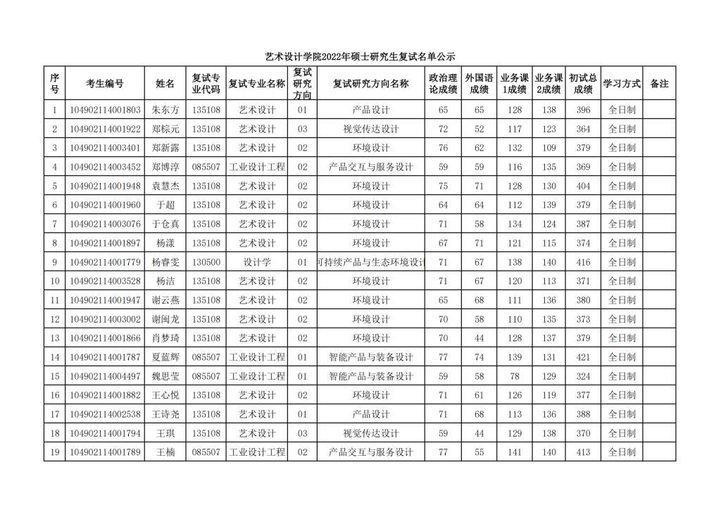 2022年硕士研究生复试名单公示(第一志愿