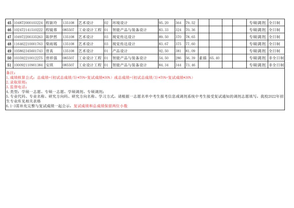 2022年硕士研究生复试成绩公示 (第一批调剂)