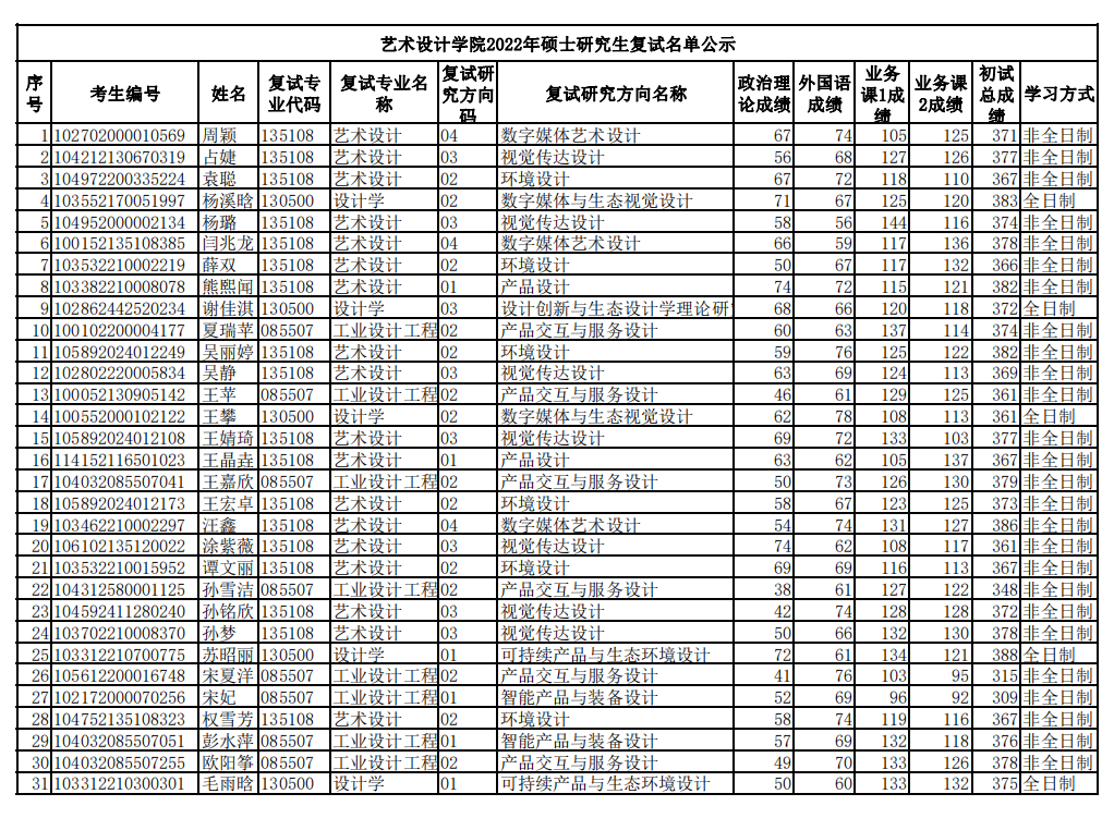 2022年硕士研究生复试名单公示(第二批调剂)