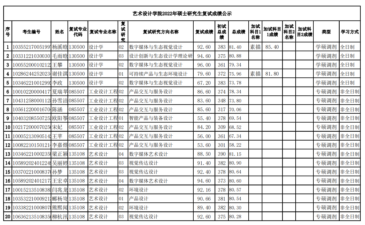 2022年硕士研究生复试成绩公示(第二批调剂)