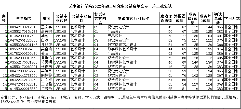 2022年硕士研究生复试名单公示——第三批复试