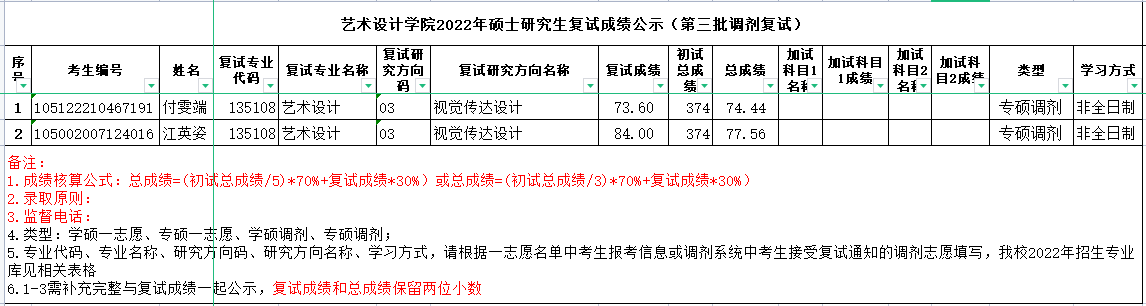 2022年硕士研究生复试成绩公示(第三批调剂复试)