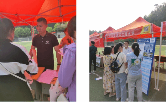 在招生咨询现场,老师们与考生及家长进行耐心的沟通交流,就校情校况、招生政策、专业情况和就业前景等问题答疑解惑。