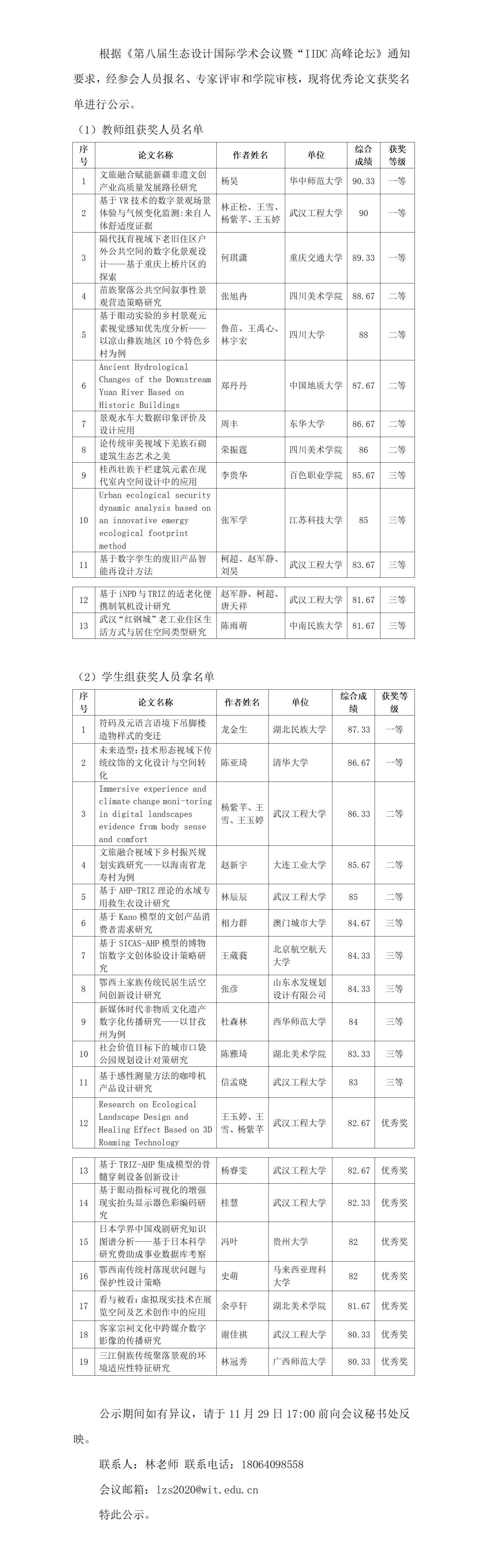 第八届生态设计国际学术会议暨“IIDC高峰论坛优秀论文获奖名单