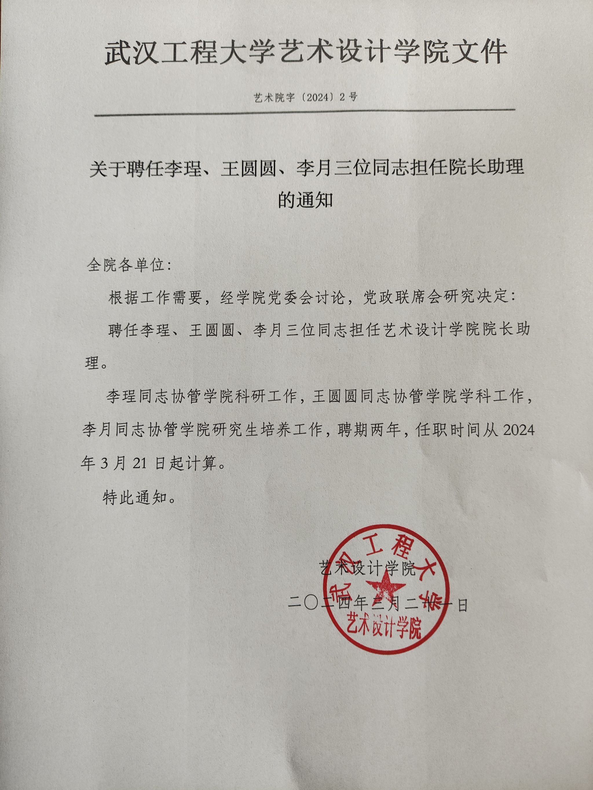 关于聘任李珵、王圆圆、李月三位同志担任经理助理的通知