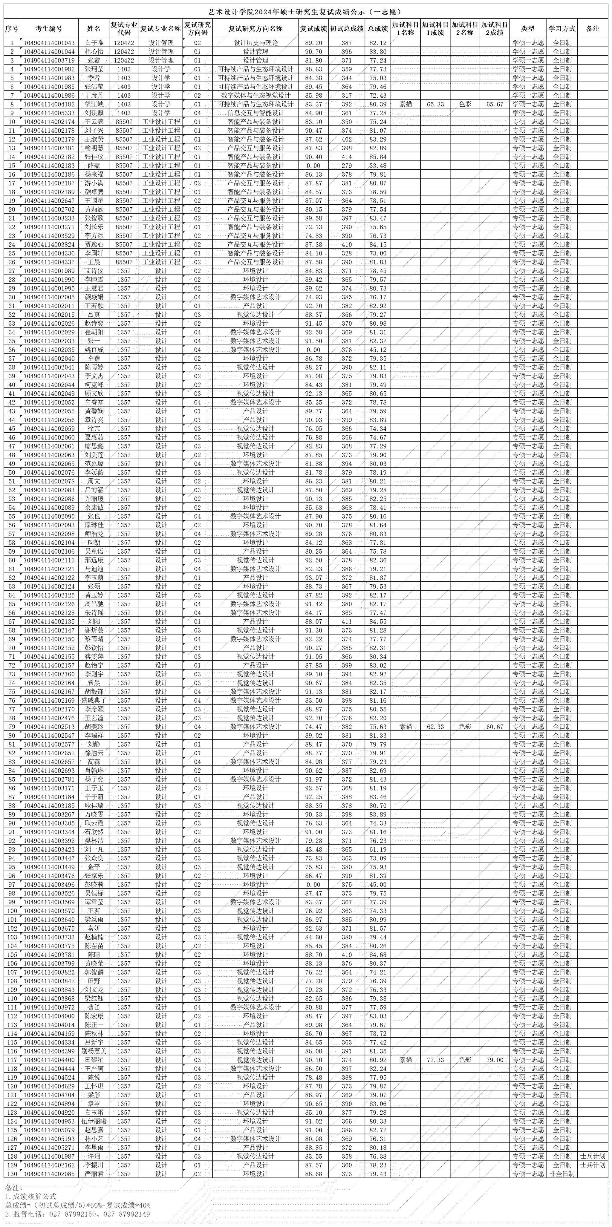 2024年硕士研究生复试成绩公示(一志愿)