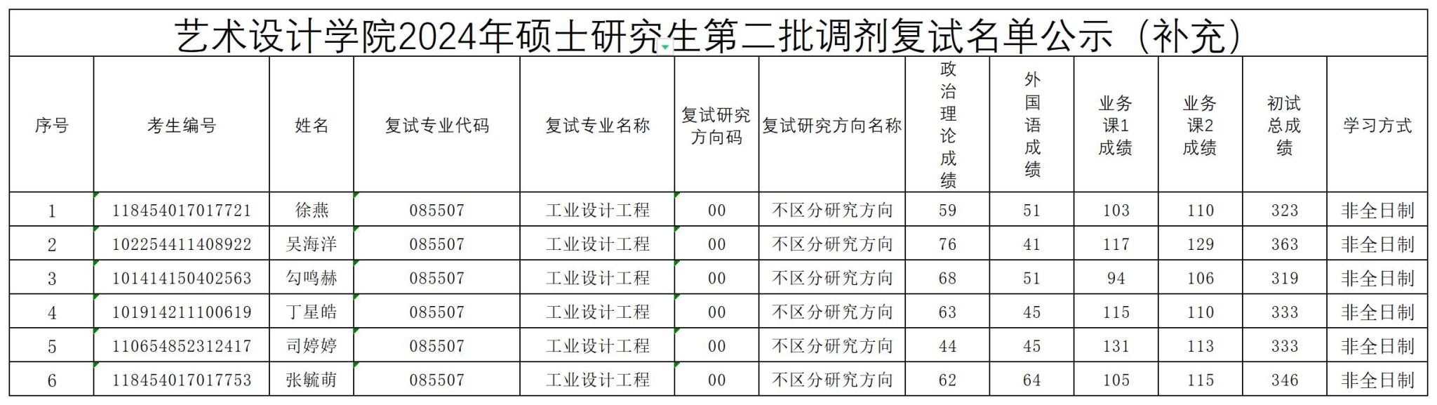 2024年硕士研究生第二批调剂复试名单公示(补充)
