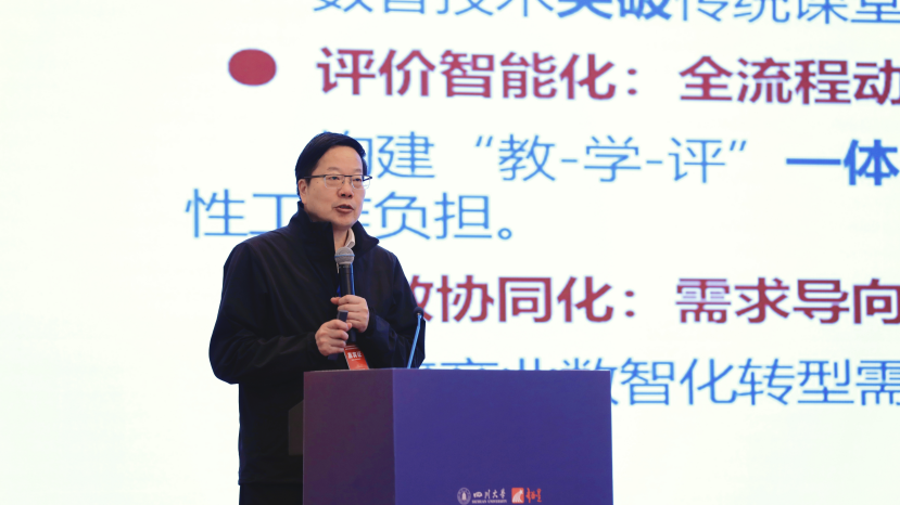 四川大学教务处处长党跃武解读《人工智能深度赋能本科建设行动计划》,提出以AI重构“专业—课程—能力”一体化培养体系。四川省高教学会会长沈火明剖析数智课程建设方向,倡导“以员工为中心”的混合教学模式,探索虚拟实验、数字教材等AI教学新形态。