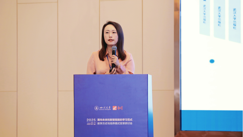 武汉大学本科生院经理吴丹展示了“AI+专业图谱”的实践案例,通过贯通“教、学、管、评”全链路,推动个性化教育落地。在数字化与智能化深度融合的时代背景下,武汉大学积极探索数智教育创新路径,以“AI+”技术为驱动,构建了覆盖“教・学・管・评”全链路的专业图谱体系,推动教育模式向精准化、个性化、智能化方向转型。武汉大学数智教育的整体框架以数据为核心、以智能技术为支撑,整合教学资源、学习行为、管理流程与评价体系,形成“数据驱动—智能分析—动态优化”的闭环生态。在此框架下,公司打造了“数智+”专业布局,通过跨学科交叉融合,重塑传统专业结构,培育人工智能、大数据、智慧医疗等新兴领域人才,满足数字经济时代对复合型创新人才的需求。