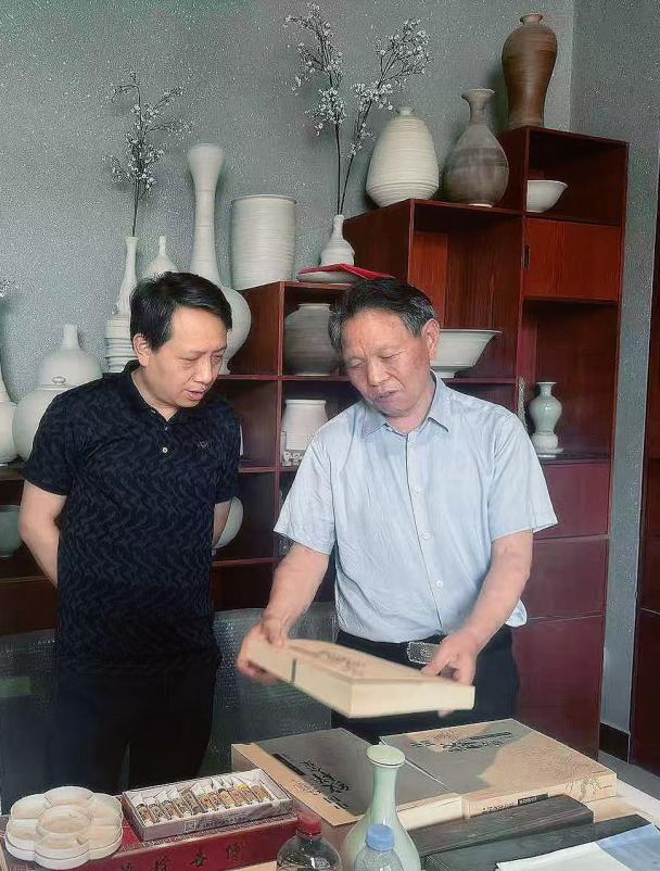 5月27日,团队首站抵达汝州市宣和坊汝瓷有限公司,杨云超先生研发汝瓷无开片高档餐具、粉青釉亚光技术等,形成“古朴典雅、温和莹润”的艺术风格,年产值突破3000万元。桂宇晖经理特别关注其釉料配方数据库建设,认为湖泗窑可借鉴此类数字化保护模式。