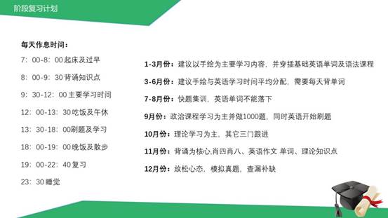 丁丰详细介绍了环境设计景观方向考研备考过程中各个科目所用的书籍以及复习方法,分享了自己考研期间的每月计划表和作息时间表以及考研心得。他强调,考研复习讲究效率,合理的安排作息时间,每天合理的给自己制定任务,并脚踏实地地完成它,你才不会浪费每一天。