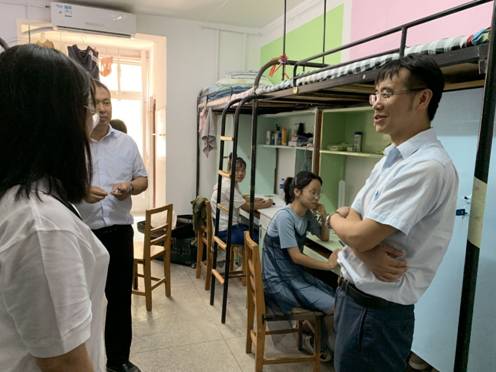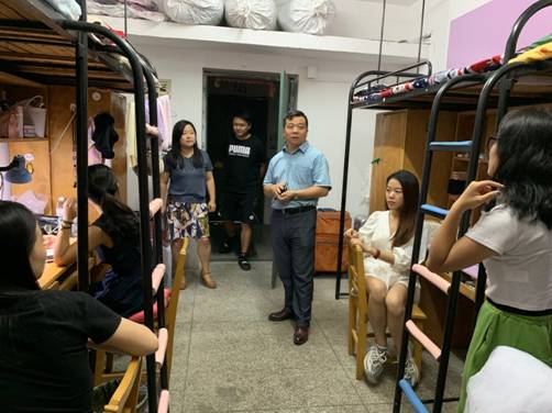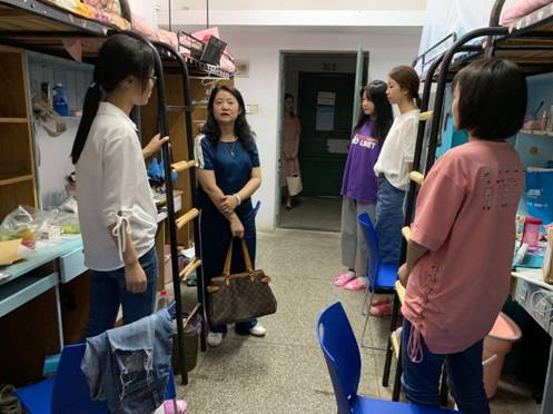 刘君副书记、宋奕勤副经理、邱裕副经理都分别走访新生宿舍,与新生及家长亲切交谈,叮嘱室友之间要互帮互助、友爱相处、鼓励新生发挥主观能动性,展现艺术素养,将寝室布置成温馨的小家。