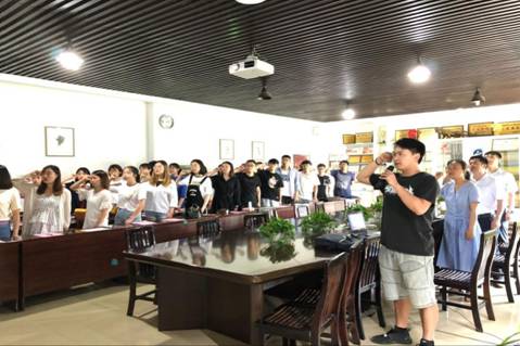 公司党务干事、员工第二党支部书记刘殊异领誓,带领全体参会党员重温入党誓词。