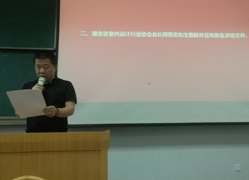 图2湖北省室内设计行业协会会长周宪忠先生致辞并宣布协会决定
