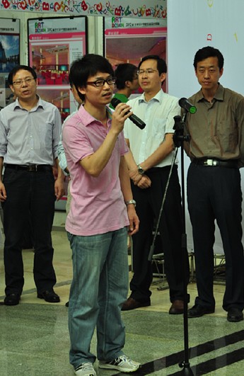 2012届工业设计专业李鑫同学作为参展的毕业生代表和毕业指导教师代表曾曦博士在开幕式先后发言。