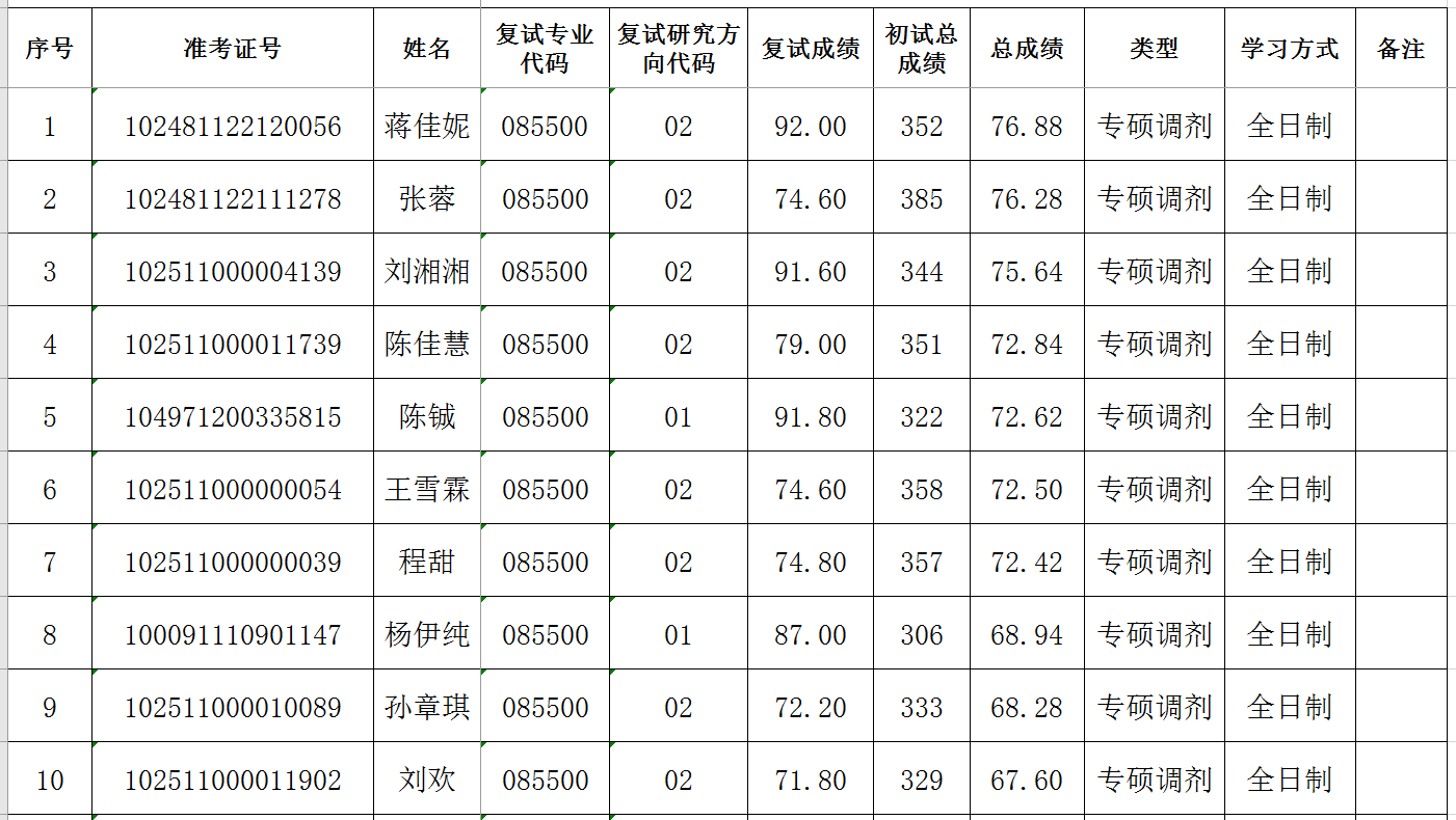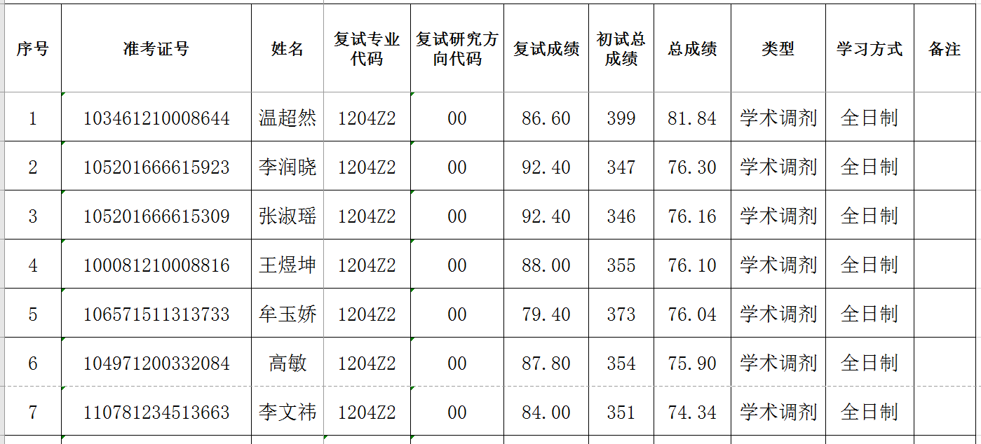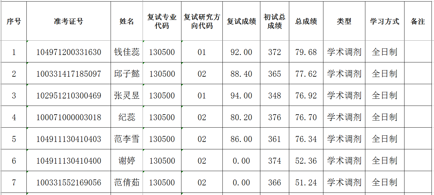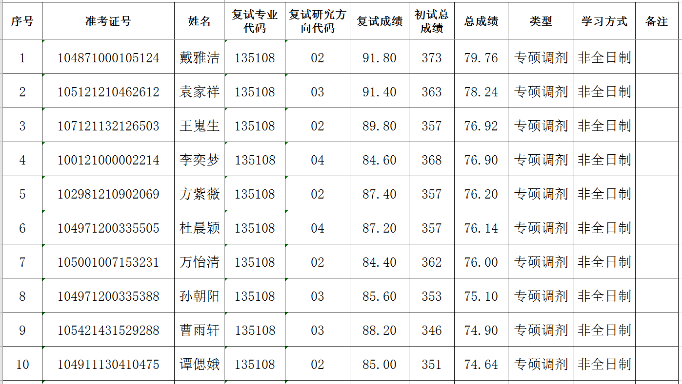 2021硕士研究生复试成绩公示(一批调剂)