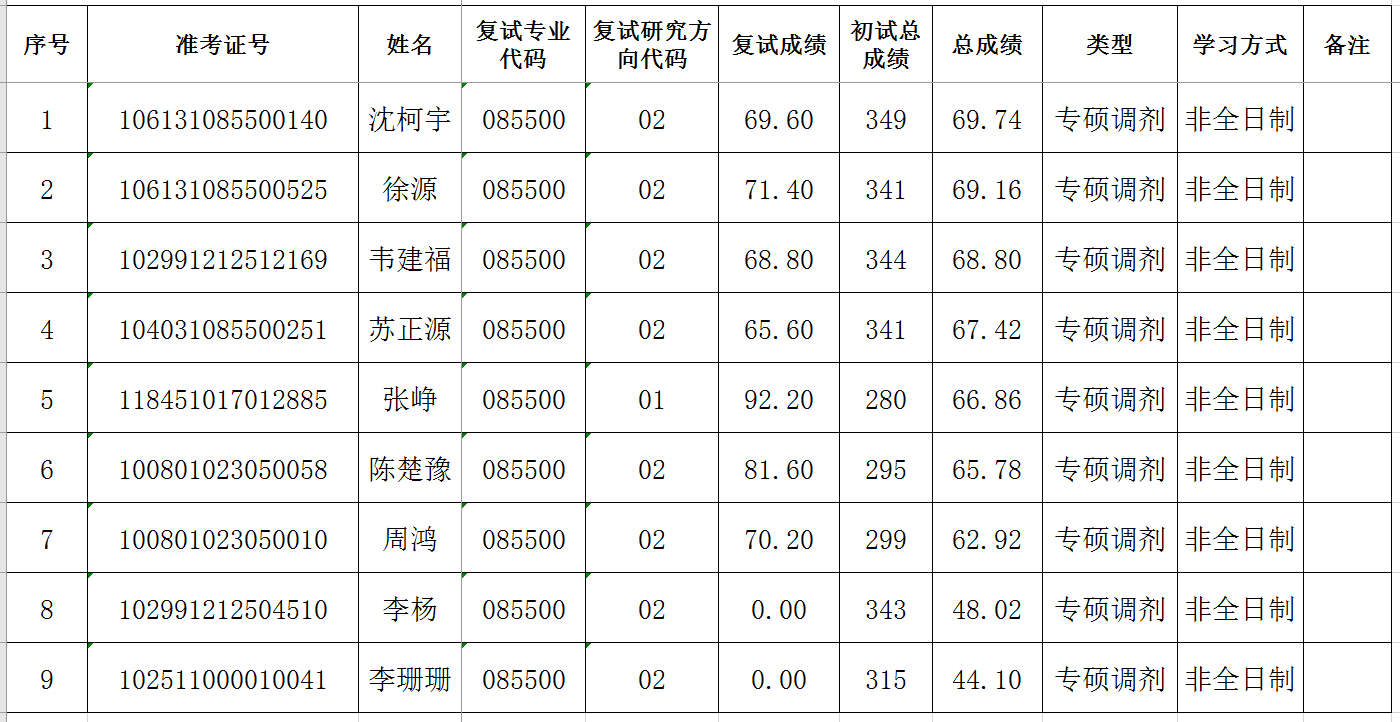 调剂机械专业(非全日制)硕士