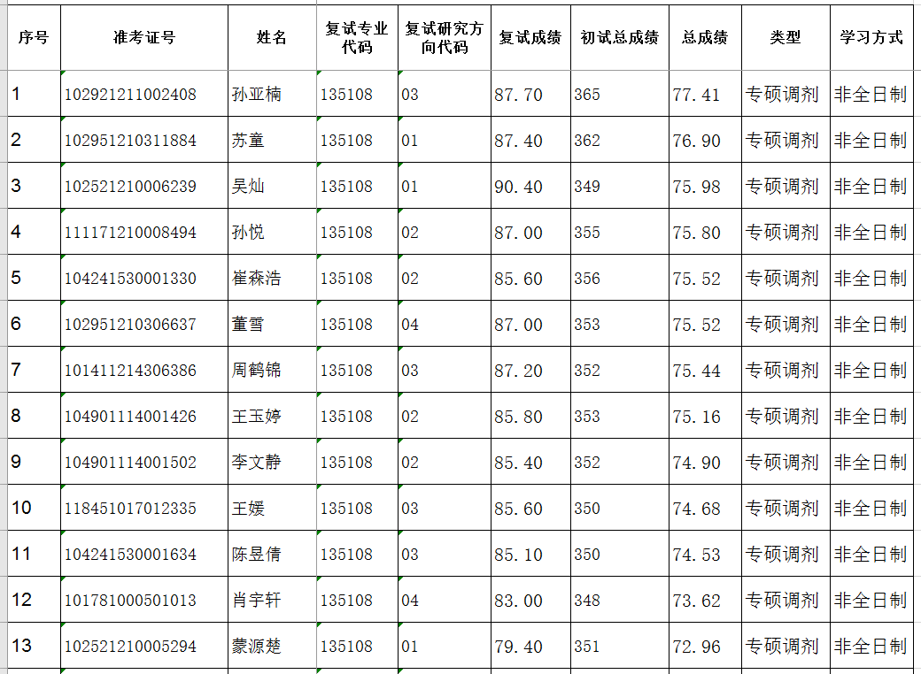 2021年硕士研究生复试成绩公示(二批调剂)
