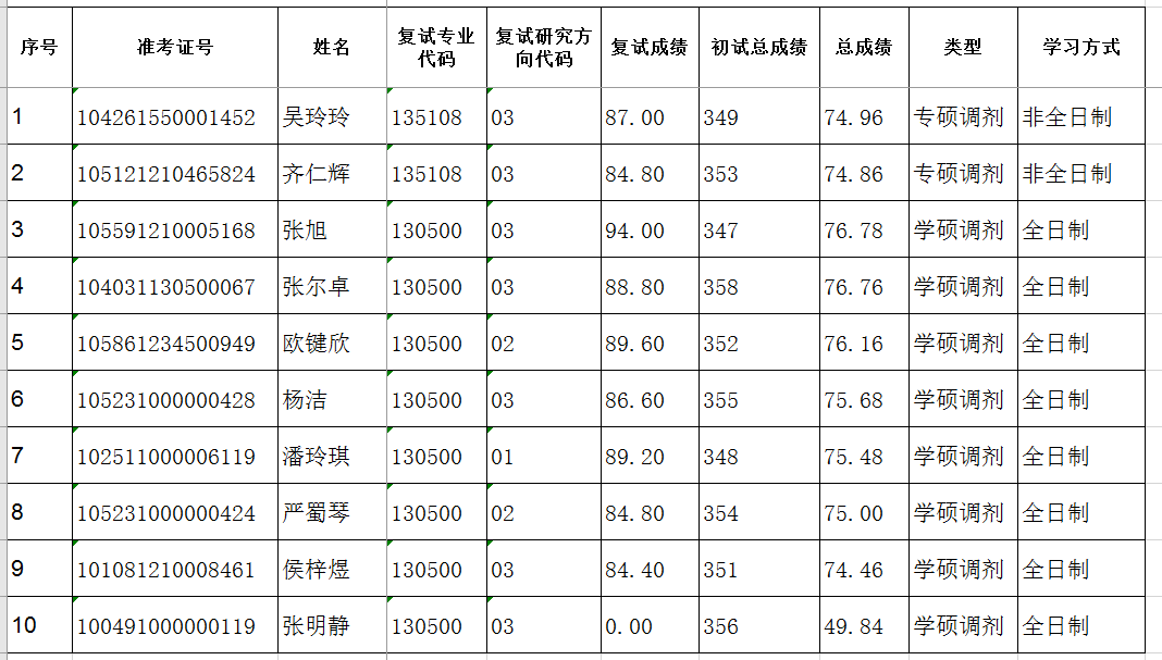 2021年硕士研究生复试成绩公示(三批调剂)