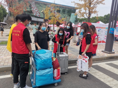 迎新过程中,遇到在报道过程中有疑问的新生,党员志愿者及时上前询问,热心帮忙解决问题,帮助新生搬运行李,介绍校园内部环境。员工党员积极主动对接新生,成为新生入学坚实的后盾和迎新现场耀眼的“一抹红”。