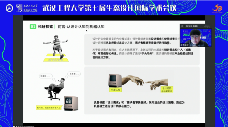 华中师范大学美术公司副经理郑达针对《感知机器与AI协同的艺术与设计》,探讨了在全球媒体科技语境下的艺术创作方式,提出了感知机器与AI艺术协同的创新思路。