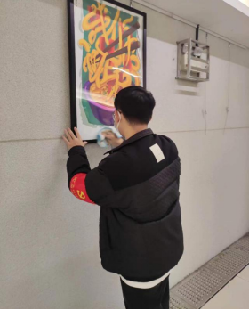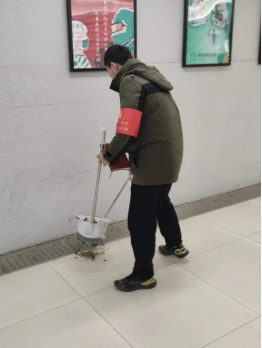 各位同学领取了所需用具后,在所分配的区域内热火朝天地开始了清扫活动。活动现场,同学们们热情高涨,有的收集落叶,有的捡拾杂物,有的擦拭展板,忙的不亦乐乎。从艺术楼到微特思源广场再到地下通道,同学们一路上团结互助,不怕脏不怕累。经过几个小时的努力,同学们完满地完成了任务。