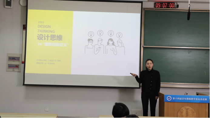 在决赛中,陈思老师以良好的教学风貌向现场评委展示了《设计思维》课程的讲解。合理选取了教学内容,思路清晰、内容充实、特色鲜明、互动充分、思政融入好、感染力强,充分展现了公司青年教师的青春风采和过硬的教学基本功,得到了在场评委的一致好评。