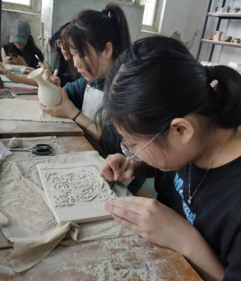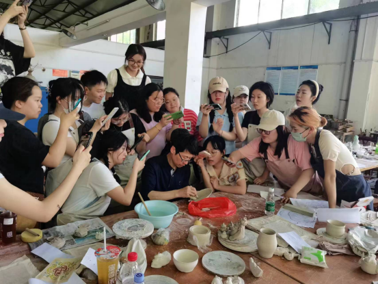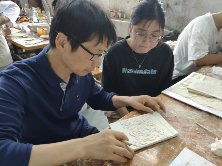 同时,两位专家受邀于2023年4月17日至20日,参与穆波老师主讲的陶瓷文创产品设计与开发课程,为公司2020级产品创新设计大良造班,开展了为期4天的课堂教学。教学内容以青白瓷半刀泥雕刻技法为主,旨在让员工们更深入地了解青白瓷的制作工艺与装饰技法,并探讨如何传承和发展这一传统文化,从而为湖泗窑文创产品开发奠定基础。