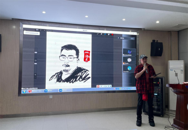 余静赣先生首先向大家讲述自己的成长经历和感悟,上世纪90年代初他辞去国家建设部的工作办公司,打造了中国家装行业领军品牌艺邦装饰,带领数以万计的家乡父老创业致富,后又到家乡横路创办了江西美术专修公司。随后他随机挑选了一名老师,用5分钟的时间完成了一幅肖像画,以此画为例,详细讲解了他在设计过程中的理念和经验,并对当下设计热点AI设计进行了分析。最后,他提出“艺术与设计是社会进步的力量”的观念,他告诫员工们:要放大自己的力量,要有信心、有目标、有行动,要以积极的态度面对生活,要以坚持不懈的态度面对人生中的各种挑战,努力学习,奋发图强。