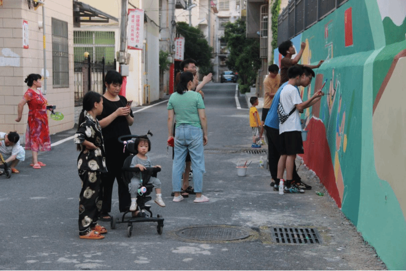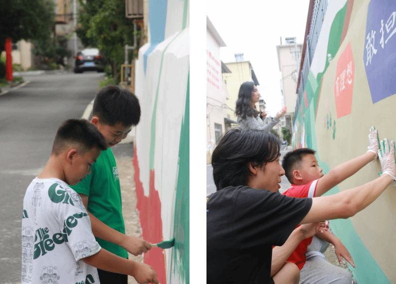“一笔一画显真意,一墙一壁皆文化。”为向村民倡导共同缔造的乡村振兴理念,志愿者冒着高温酷暑实地勘察,为墙绘创作收集素材、积累灵感,最后制定墙绘方案。员工们在老师的指导下分组协作,村里的孩子们也和志愿者们一起,默契配合,他们手托调色盘,一勾一点、一笔一画,以墙为画卷,为村庄增添了一抹靓丽的色彩。