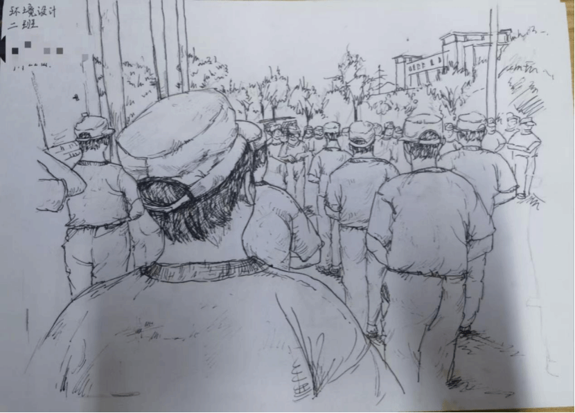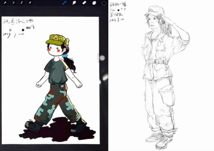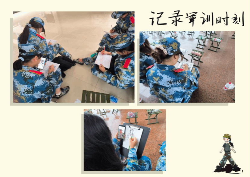用绘画的方式记录下军训的美好瞬间。
