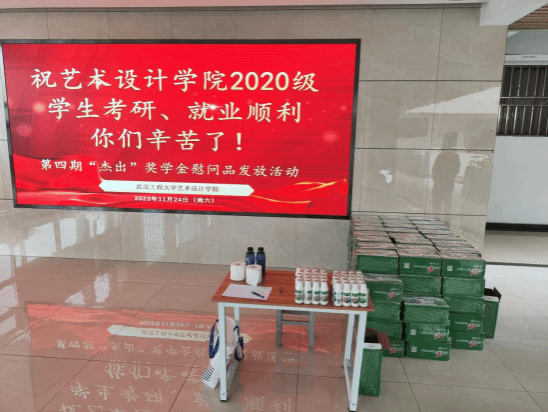 11月26日下午2点,“杰出”奖学金(第四期)慰问品发放活动在艺术楼一楼大厅顺利进行。