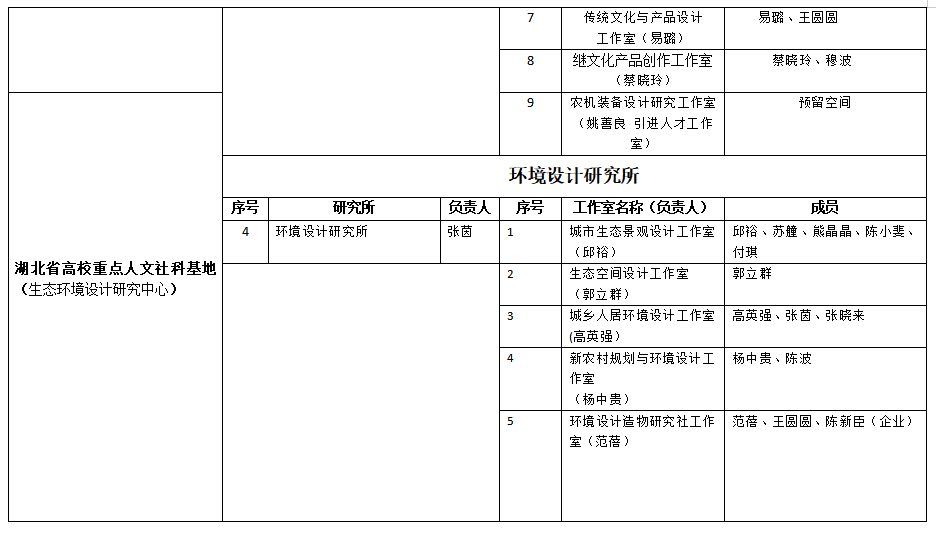 湖北省高校重点人文社科基地(生态环境设计研究中心)办公情况