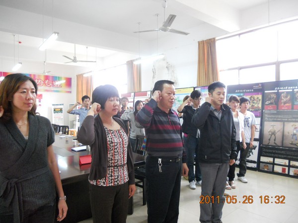 研讨推进会结束后,全体党员在刘部长在带领下面对党旗,郑重承诺,重温入党誓词。