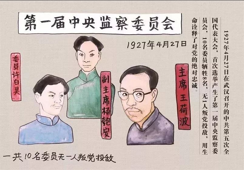 1927年4月27日在武汉召开的中共第五次全国代表大会,首次选举产生了第一届中央监察委员会,10名委员牺牲8名,无1人叛党投敌,用生命诠释了对党的绝对忠诚。