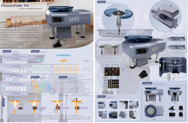 在智能设计与传统工艺结合方面,孙雪洁的《自动中心送料陶艺拉坯机设计》针对陶艺初学者,以用户需求、优质体验作为切入点,结合人机工学与当前市场上的电动往复推杆与变频调速技术设计造型与结构,通过技术创新降低操作难度,