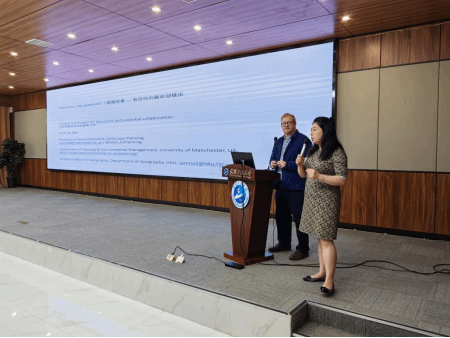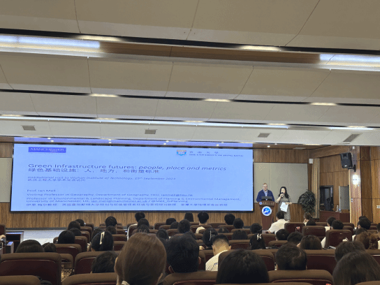 讲座主要围绕绿色基础设施展开,对绿色建设关键词汇含义、研究框架、要素、专题、政策和宣传等方面进行了详细的阐述,重点介绍了政府管理替代方案和政府与发展绿色建设的联系、问题及挑战,对前期成果进行分享,提出因地制宜的方法论、标准化的重要性和数据政策整合模式等观点,展望了绿色基础设施的未来发展。伊恩·梅尔教授以科研工作经历与在场师生进行了一场充满诚意的交流,与会师生据此了解到在未来的规划中绿色基础建设拥有无限的创造力同时也存在很多现实问题,进一步思考如何在政府管理中展现绿色基础建设的优越性,发挥两者协同功效,使与会师生受益匪浅。讲座结束后是提问环节,在场师生与伊恩梅尔教授进行了深入交流和热烈讨论。