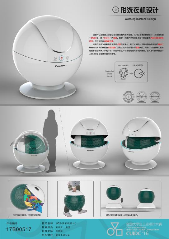 1、第三届“青鸟杯”工业设计大赛,O形洗衣机设计,三等奖,2016年6月;