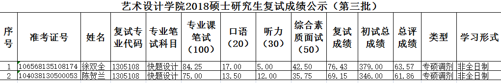 2018硕士研究生复试成绩公示(第三批)