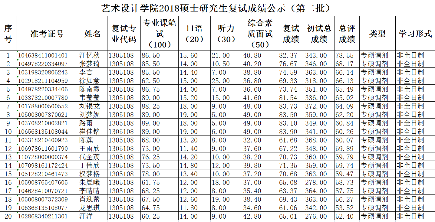 2018硕士研究生复试成绩公示(第二批)