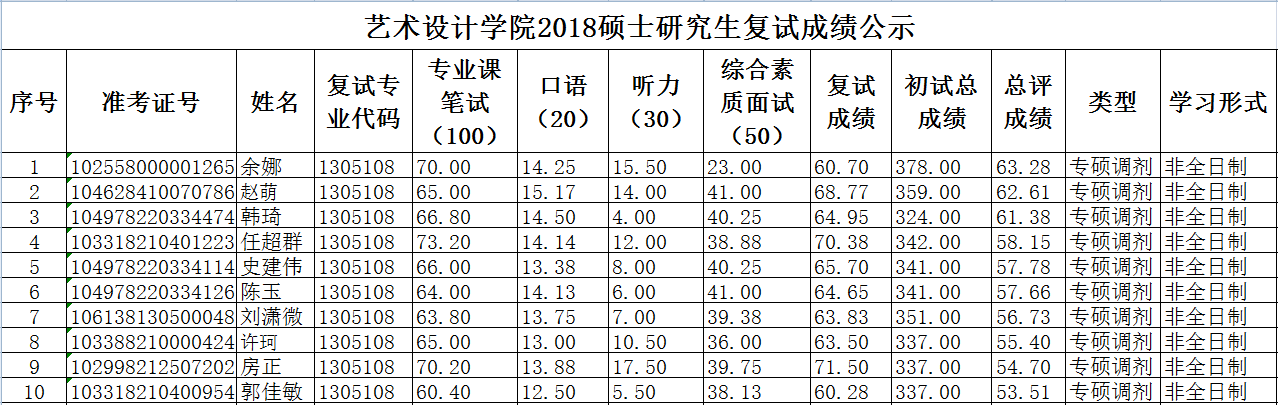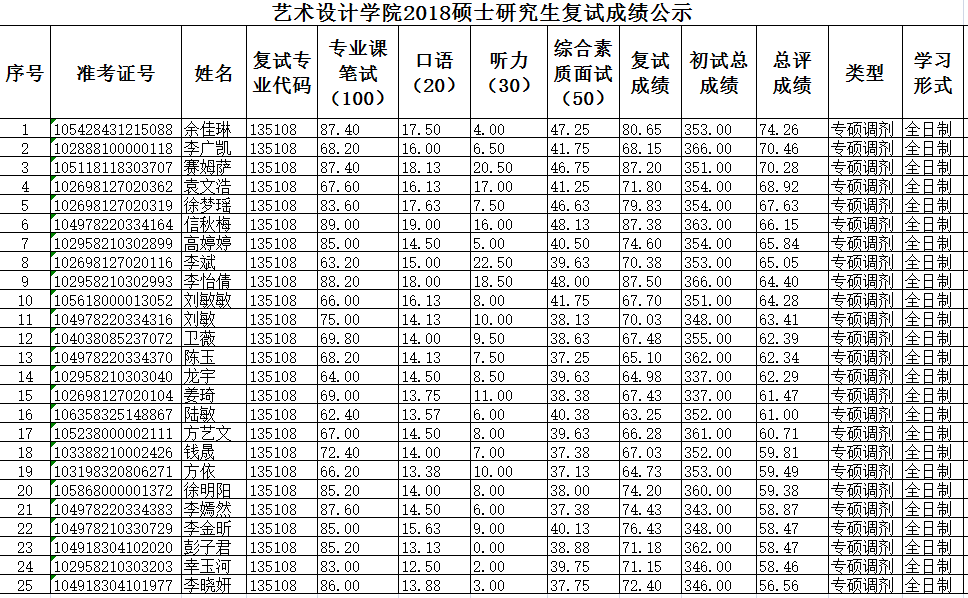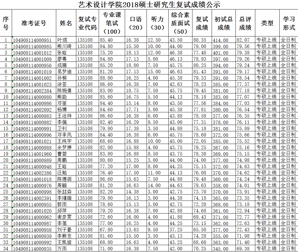 2018硕士研究生复试成绩公示