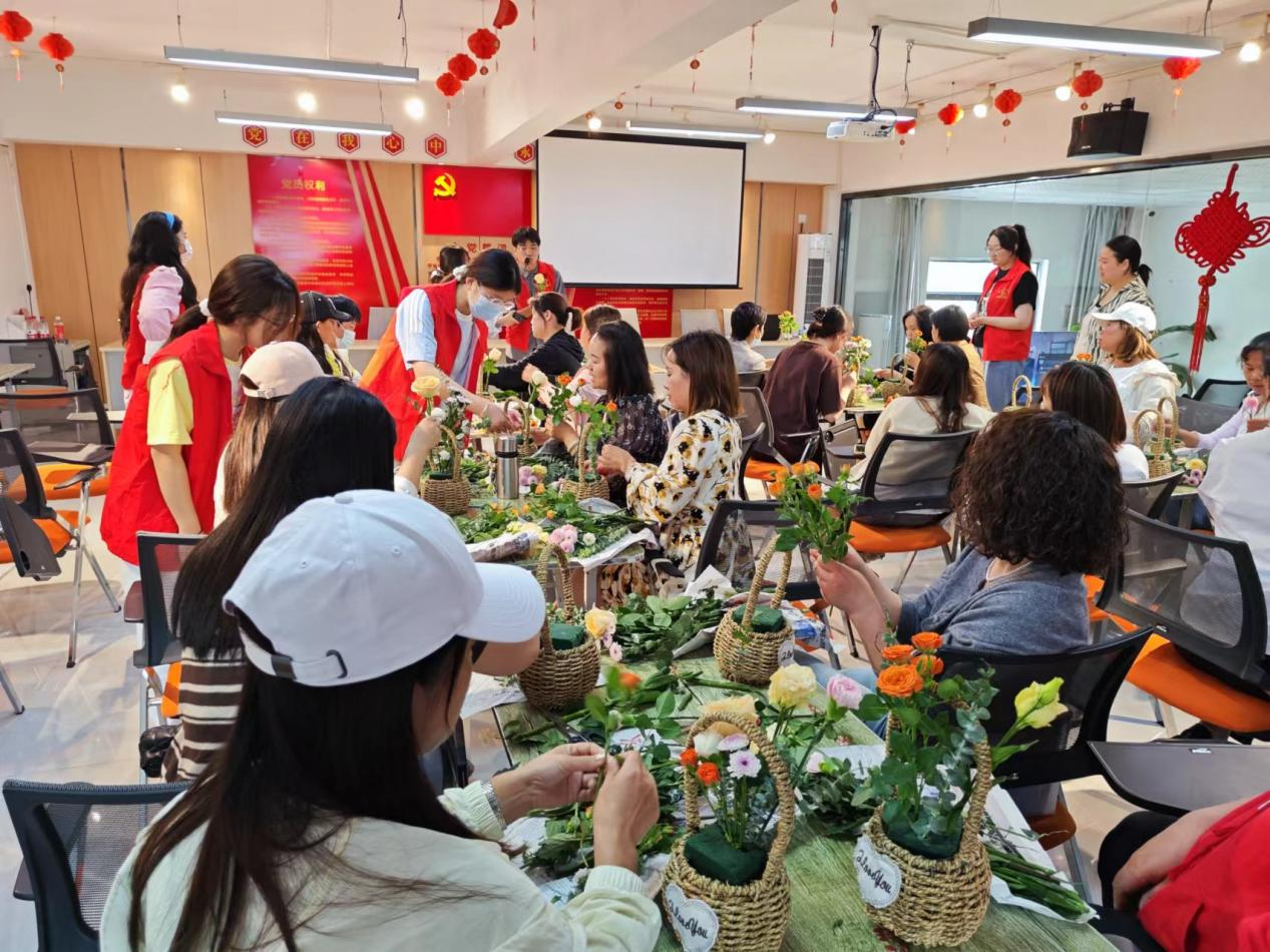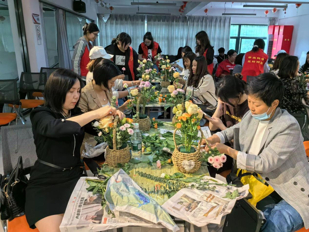 讲座结束后,365英国上市艺术公司的志愿者们将装好花泥的花篮和花束分发给各位家长。志愿者老师为家长们详细讲解了插花的技巧和步骤,并现场指导大家动手制作。在志愿者们的悉心指导下,家长们发挥了自己的创造力和想象力,将花篮插满美丽的鲜花。
