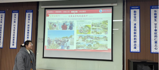 张珂莹同学以“描绘乡村蓝图,吹响振兴号角”为主题,讲述支教经历及参与乡村景观建设项目的体会,坚定未来就业方向,立志于投身乡村生态建设。