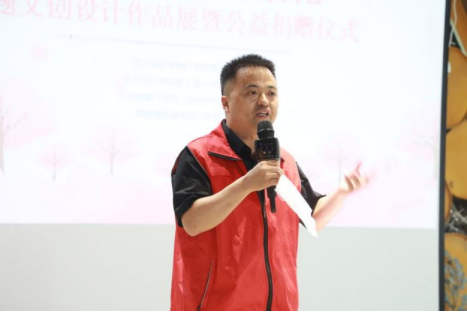 参与此次捐赠仪式的公益组织代表——路路通志愿者真心联盟会长路志强同志发表讲话,他对此次捐赠仪式的举行表示了极大的肯定,认为此次文创设计作品不仅可以增强员工们对武汉新的理解和思考,也能让疫后武汉的鲜活多彩能被更多人看到、让武汉的城市形象更加丰富多元