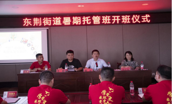 开班仪式上,杨龙燕同学作为本次志愿队队长向东荆街道工作人员、员工家长及同学们汇报了我们此次活动的目标和内容,同时介绍了公司的发展历史,促进其对公司的认识和了解。