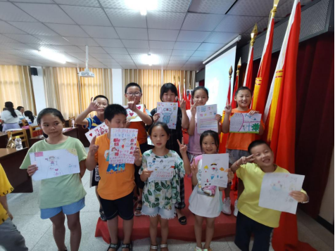 课堂上,“小老师”们向东荆街道暑期托管班的孩子们讲述了河南灾情,播放了相关新闻报道,当地孩子深受触动,于是经过一周的共同努力,在“小老师”们的精心指导下,托管班的孩子们完成了69幅以“河南加油”为主题的绘画作品。